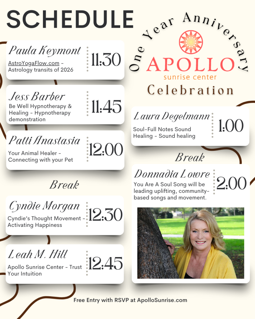 Join us as we celebrate one year of Apollo Sunrise Center—a year of growth, connection, healing, creativity, and community. This open-house style anniversary celebration is our way of saying thank you to everyone who has been part of our journey and welcoming new faces into the Apollo Sunrise community.